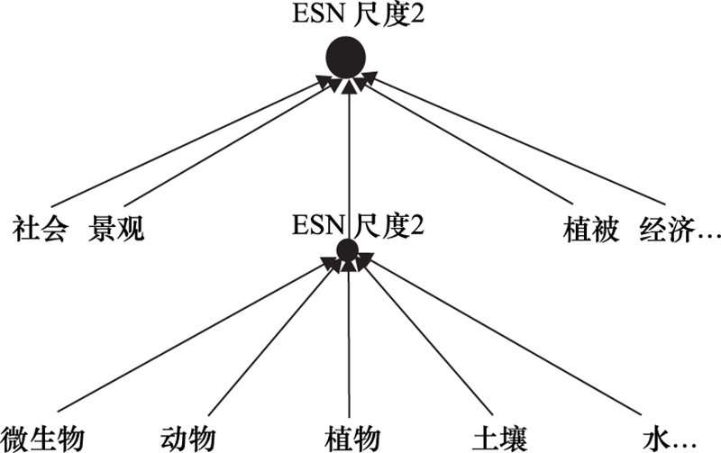| 图 2 生态系统服务网络尺度特征 Fig. 2 The scale features of the ESN ESN, ecosystem service network, 生态系统服务网络 |