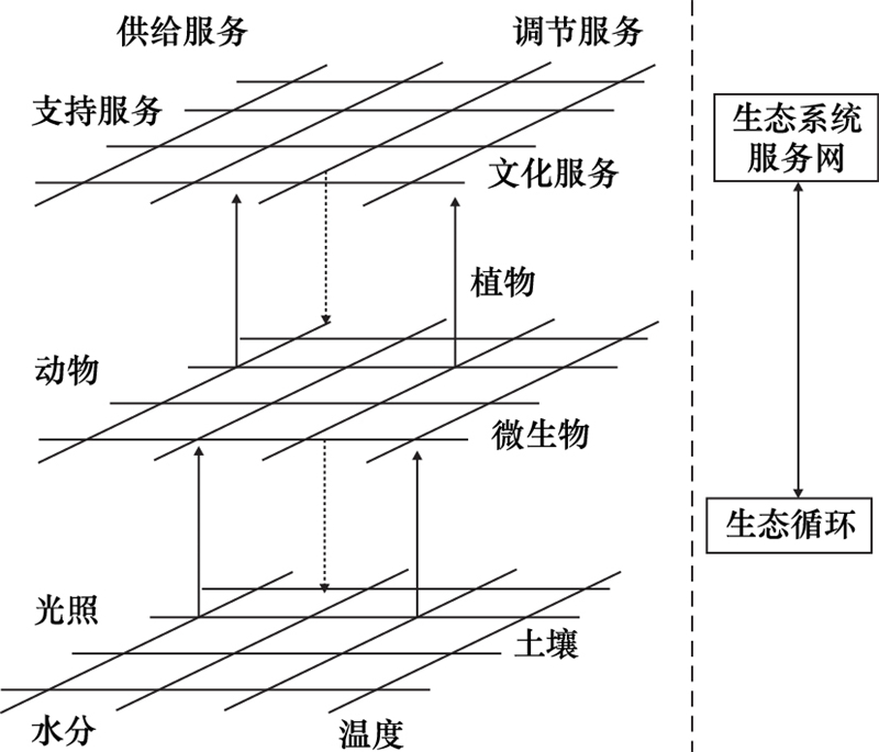 | 图 7 生态系统服务网与生态循环 Fig. 7 Ecosystem services network and ecological cycle |